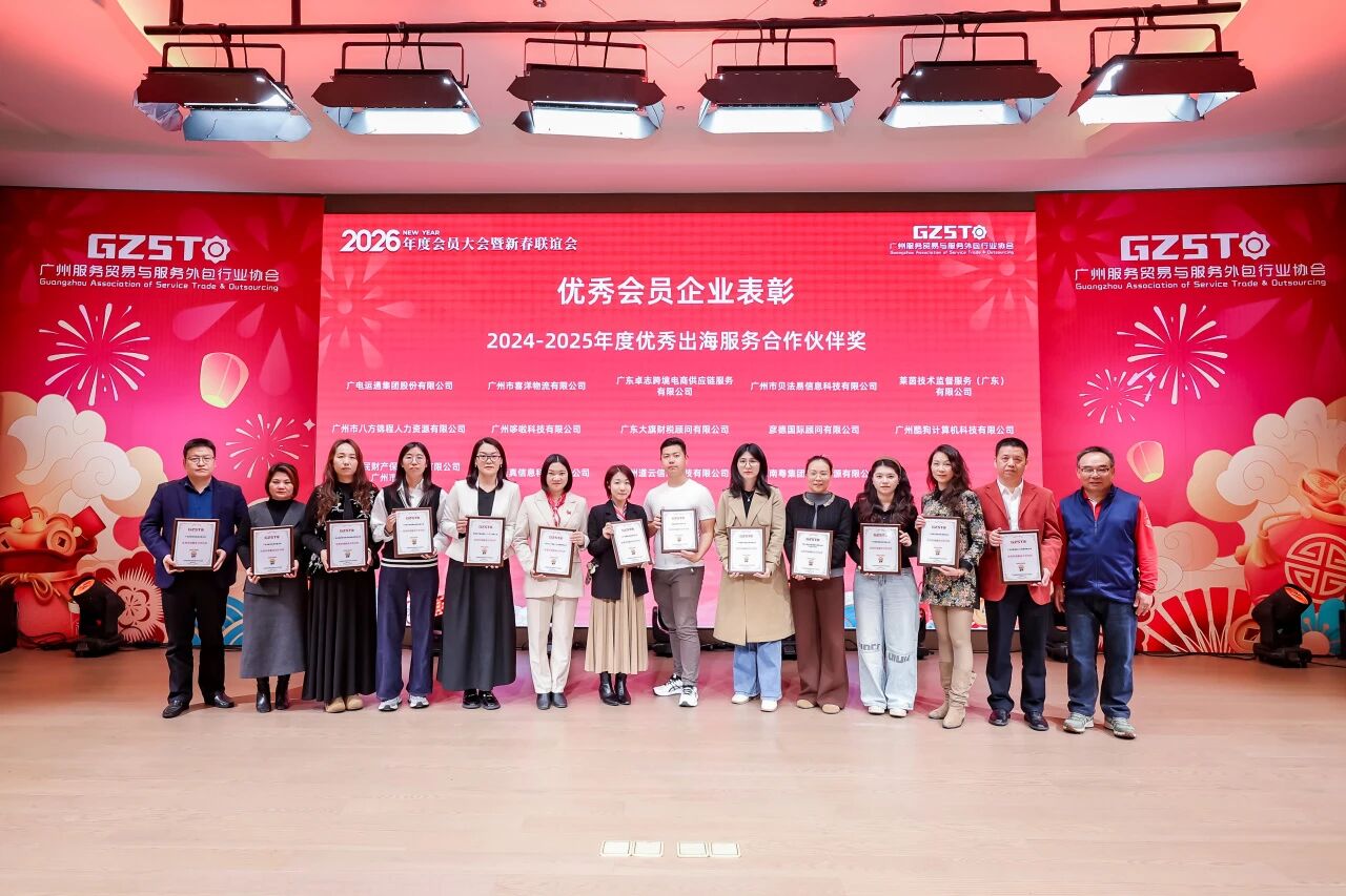 2026年1月30日,广州服务贸易与服务外包行业协会年度盛会——2026年度会员大会暨新春联谊会在广州隆重举行。本次大会汇聚了协会会员代表、广州市商务局、市工业和信息化局及各区商务主管部门领导、行业资深专家、兄弟商协会代表以及往届会长及合作伙伴等各界精英,共话行业发展新机遇。